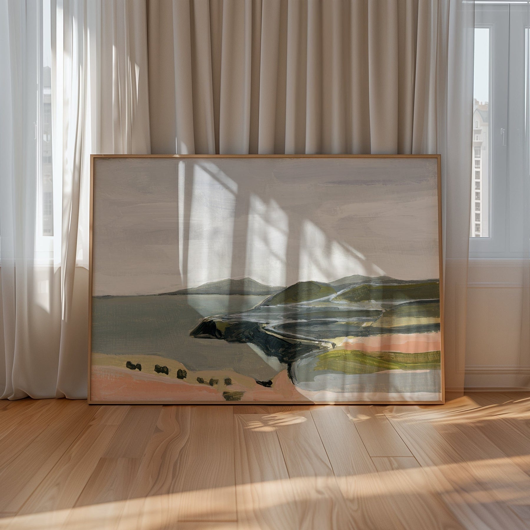 This piece came from walking along coastal trails of France, where the path winds high above the water and the view feels endless. I painted it to capture that mix of openness and peace.