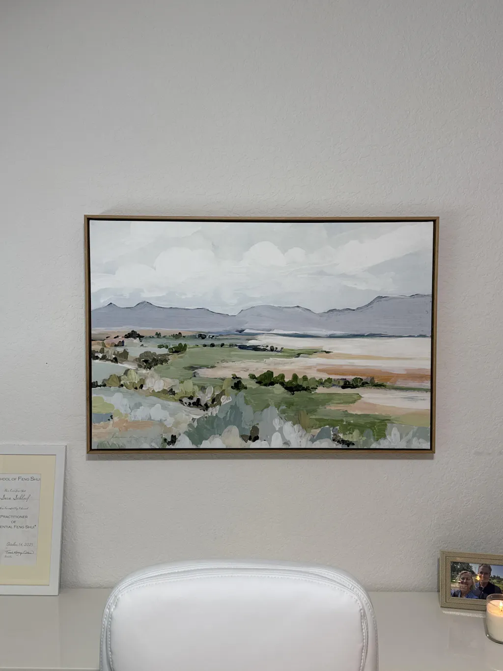 I love I absolutely love this piece. I purchased it for my office, as I was looking for a mountain landscape to serve as the backdrop for my Zoom sessions with clients. As a Feng Shui consultant, creating a strong and supportive background is important to me—you want to “sit in the belly of the dragon,” protected from behind and empowered in your space. This artwork captures that energy beautifully.