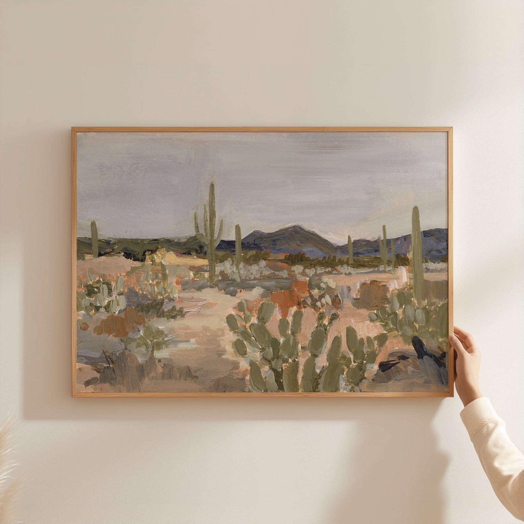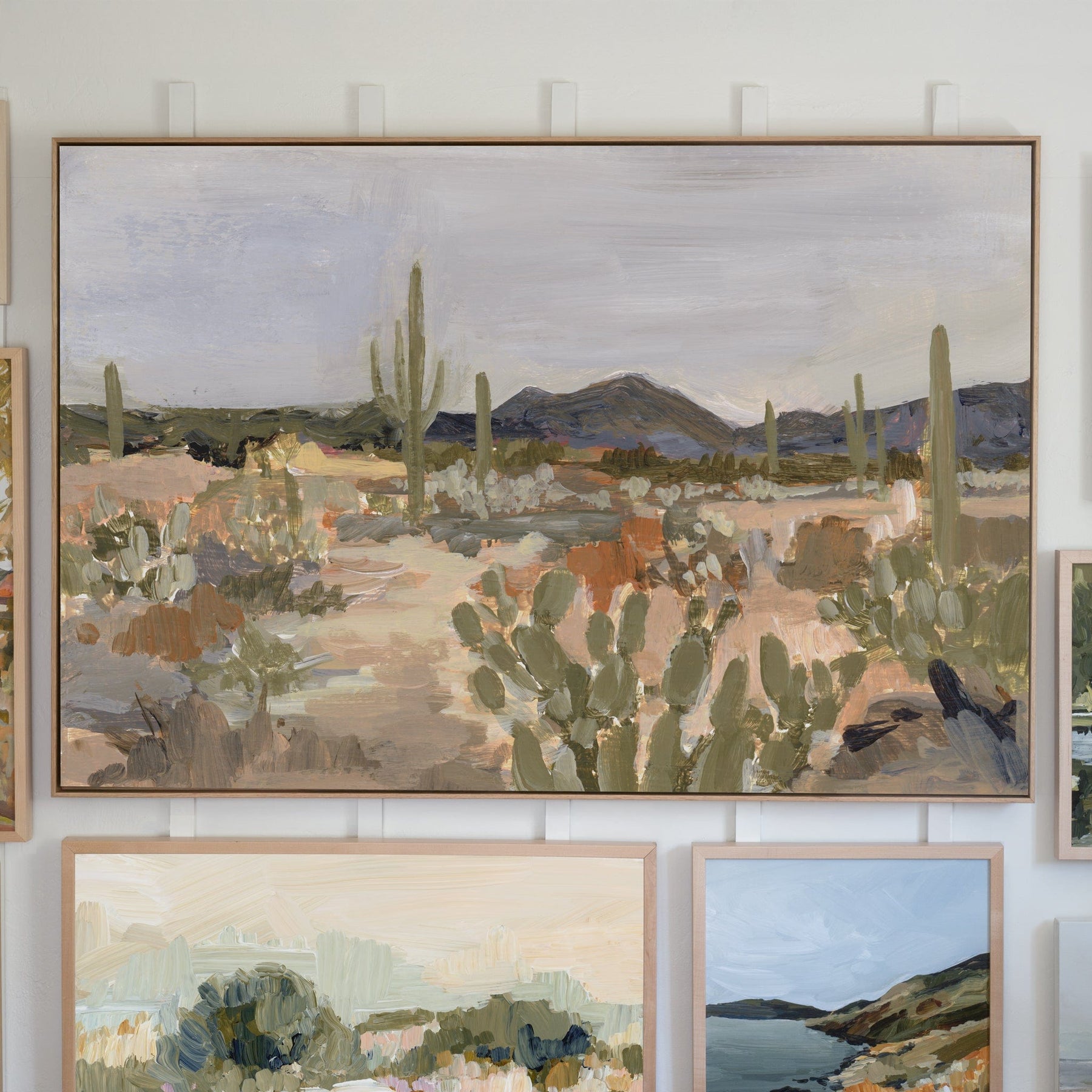 I painted Twilight to capture that fleeting moment when the desert shifts into night. The muted purples and deep shadows across the cacti remind me of how still and mysterious the desert feels once the sun dips.