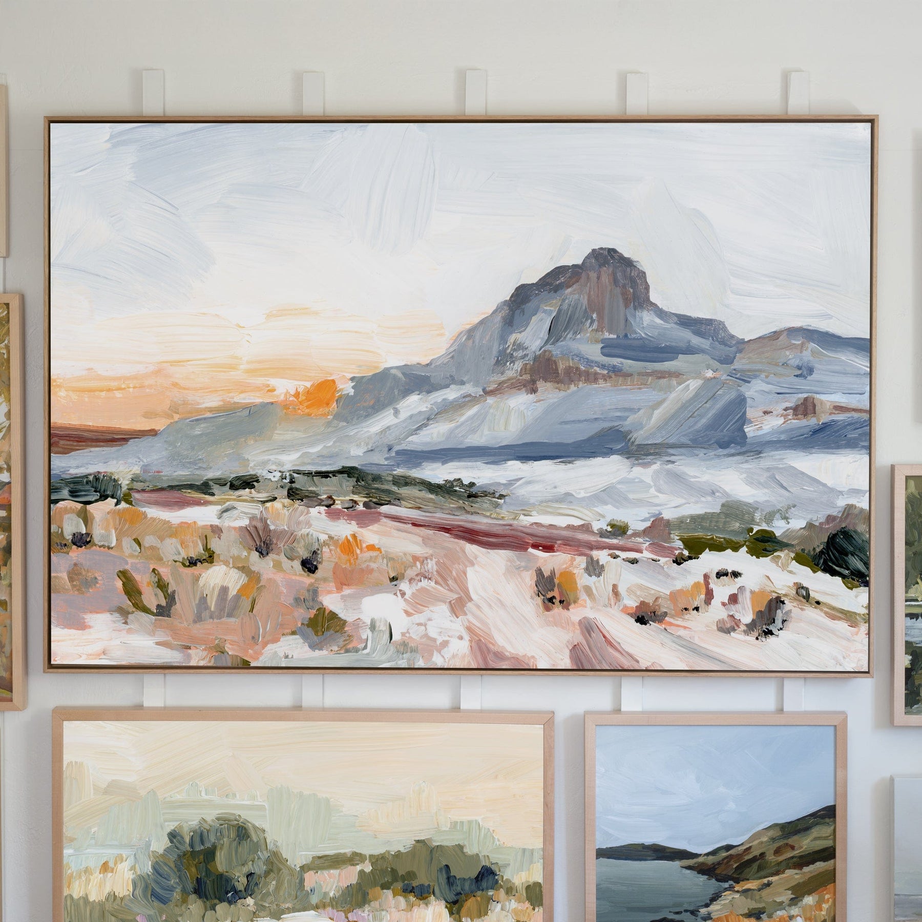 This painting was inspired by a camping trip in the desert, when we woke up to watch the sunrise. The first light hit the rocks with a warm glow, while the soft colors of the morning spread across the sky. I wanted to capture that peaceful, unforgettable moment.