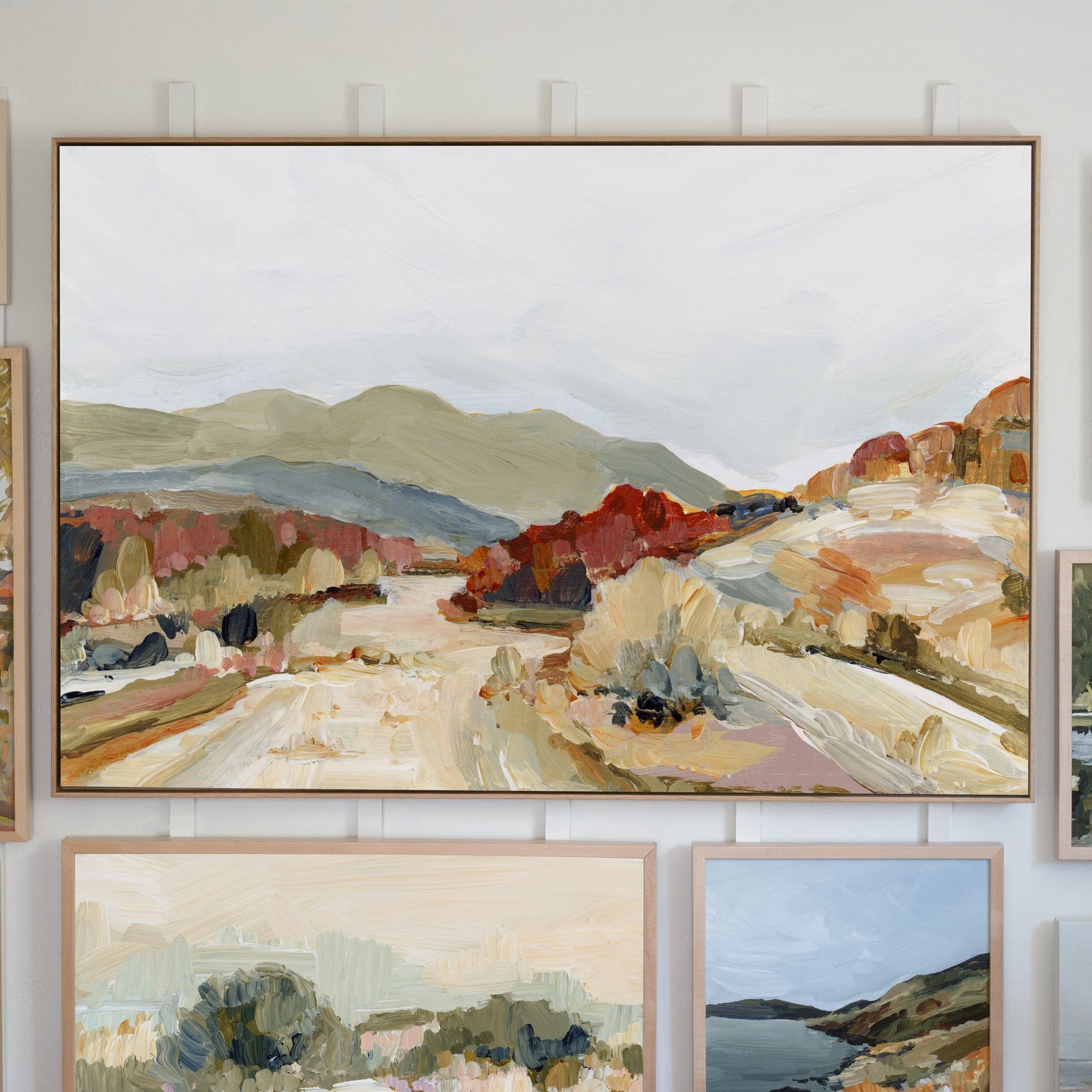 I was inspired to paint this piece while walking through the desert, where the dry riverbeds wind their way between the hills. The muted earth tones mixed with warm touches of red and gold felt so unique, and I wanted to capture that beauty in paint.