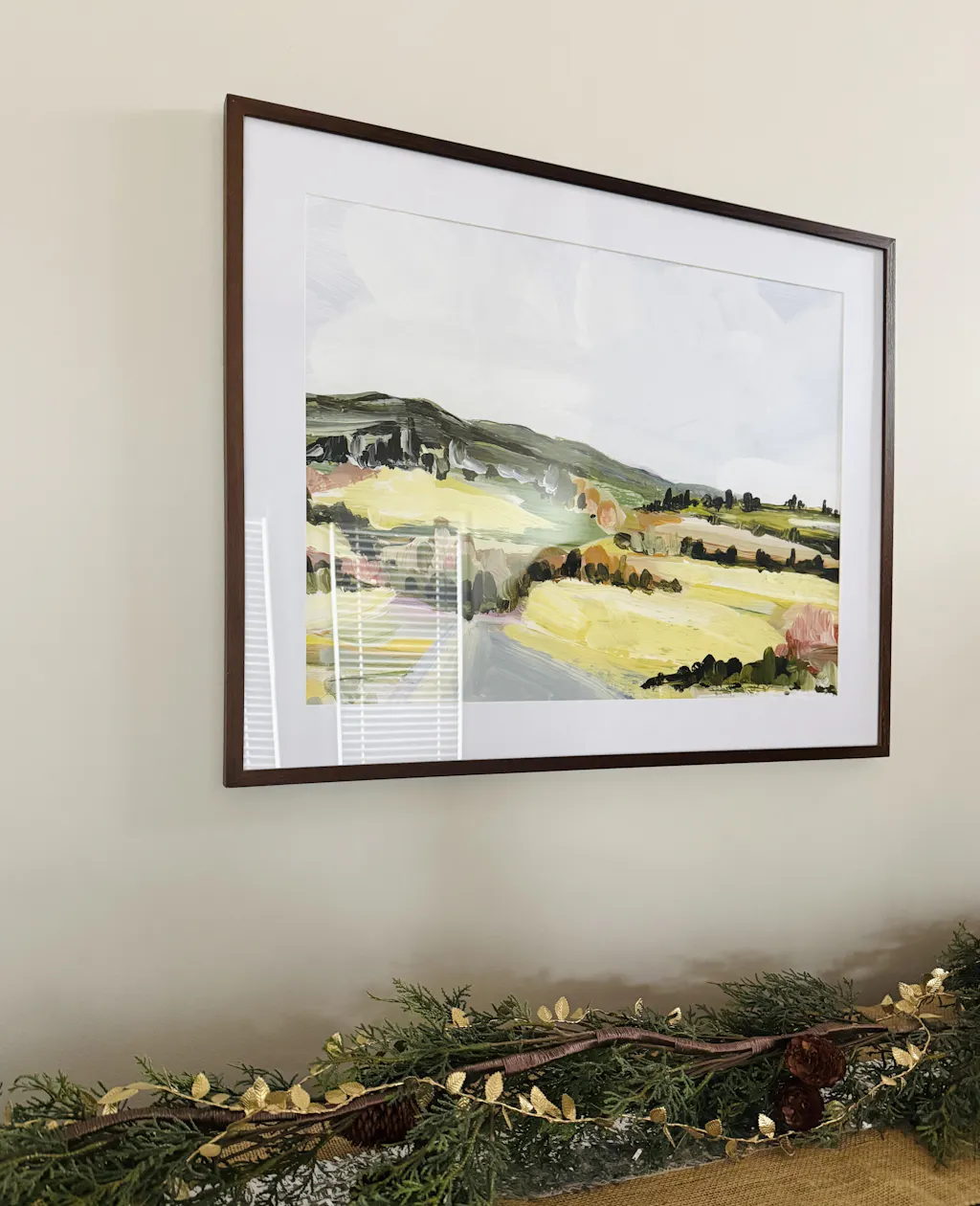 Beautifully finished in a hand-crafted natural wood floater frame — arrives ready to hang, no assembly needed. Frame adds about 1 1/8" to overall dimensions (ex: 18x24" becomes 19 1/8 x 25 1/8") and is 2 1/8" deep.